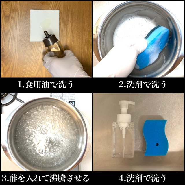 4.鍋の中と外を中性洗剤できれいに洗いながして準備完了です。