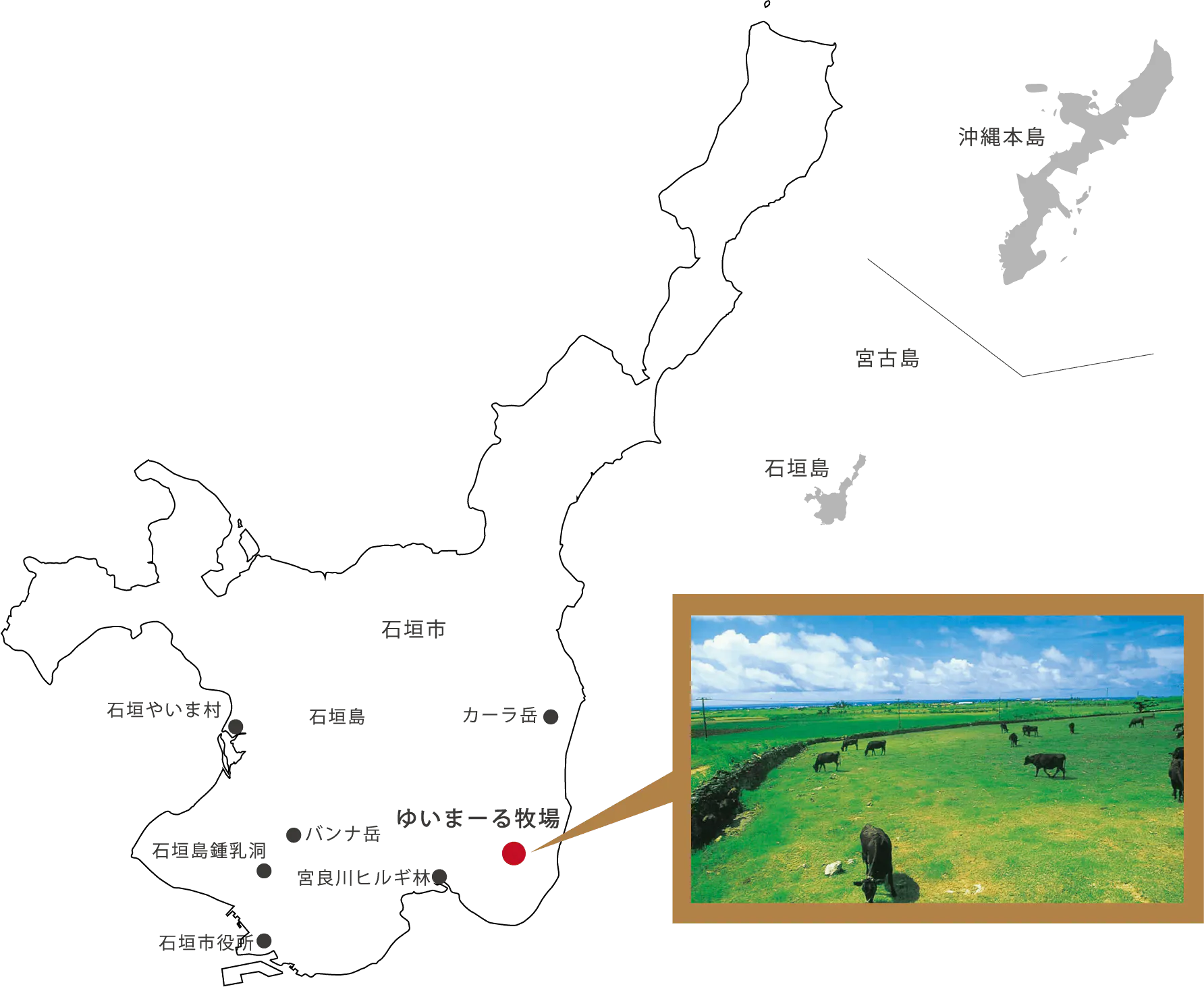 南西へおよそ400km(那覇空港から飛行機で1時間)の東シナ海に浮かぶ石垣島は年間約140万人が訪れるの人気の観光地です。「ゆいまーる牧場」は石垣島中東部に位置し、畑が広がる自然豊かな地域です。