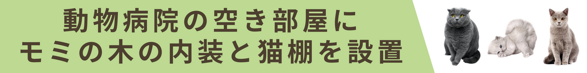 猫の健康や発育に最適とされ、キャットランルームの内装や猫棚に適しているモミの木を使った内装リフォーム費用などのご支援を募ります。