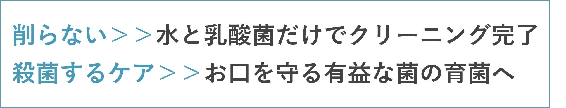 ロイテリ菌を使ったデンタルケア製品は、酸化アルミニウム、サッカリンナトリウム、ラウリル硫酸ナトリウム、ポリエチレングリコール……のような、吐き出さなくてはならないような化学物質はゼロです。水と乳酸菌だけで磨き、全て殺菌せずに、お口を守る有益な善玉菌は育菌するので、お口の中の菌質を育み、口腔トラブルを予防します。