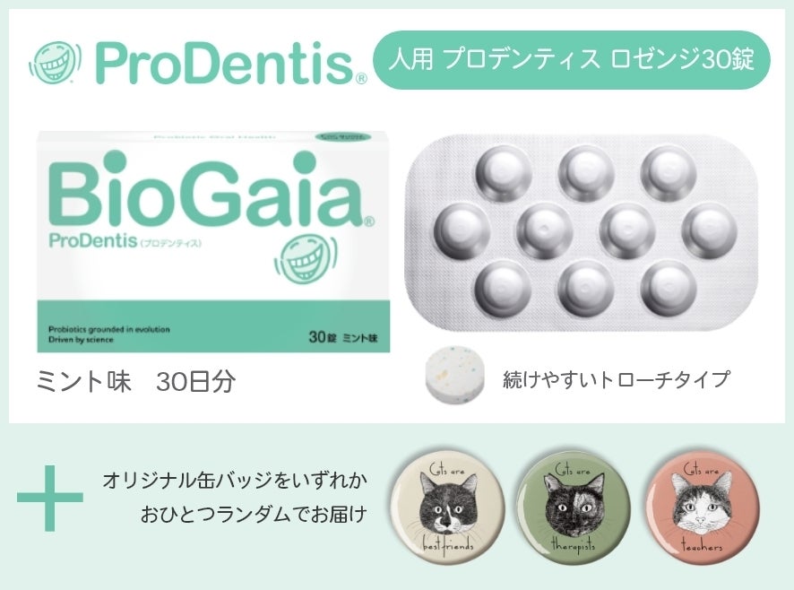 1日1〜2粒なめるだけのオーラルケア。 L. ロイテリ菌プロデンティス®(L. reuteri® DSM 17938、L. reuteri® ATCC PTA 5289)配合。お口の中でゆっくり舐めて、プロバイオティクスのはたらきによりお口の中の菌のバランスを健康に保ちましょう。