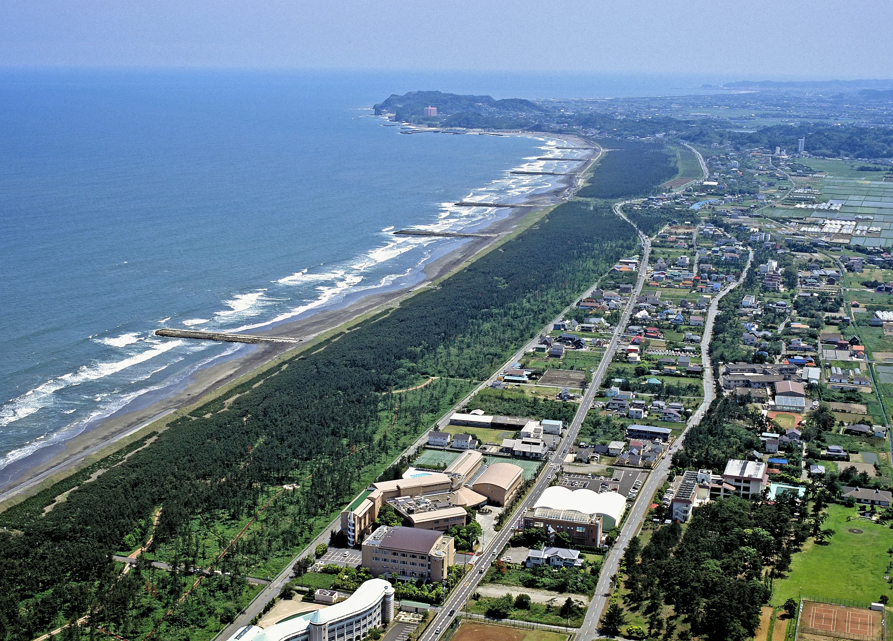 千葉県一宮町(上総一宮)は,ゆるやかに弧を描く九十九里浜の南端に位置し,東側にはオリンピックのサーフィン競技が開催された釣ケ崎海岸を含む太平洋の海岸線が広がり,西側には丘陵台地西側には丘陵台地をひかえた,風光明媚で気候温暖な町です。一宮町の大半を肥沃な田や畑,山林が占めており四季を通してあふれる緑に包まれています。古くは,上総一宮1万3000石の城下町として栄えた歴史をもち,その後は,日本一といわれるガラス温室団地など,ハウス栽培を中心とした野菜果樹園芸を基幹産業にしています。長生メロン・長生トマト・長生梨が特産品です。