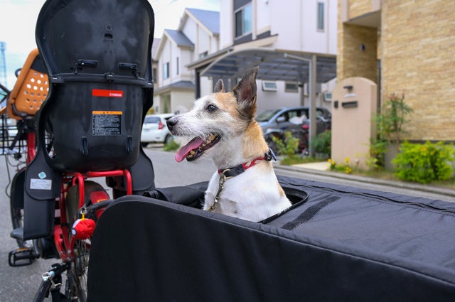 カバーに換気窓が付いているので、ペットをのせてサイクリングも可能です。