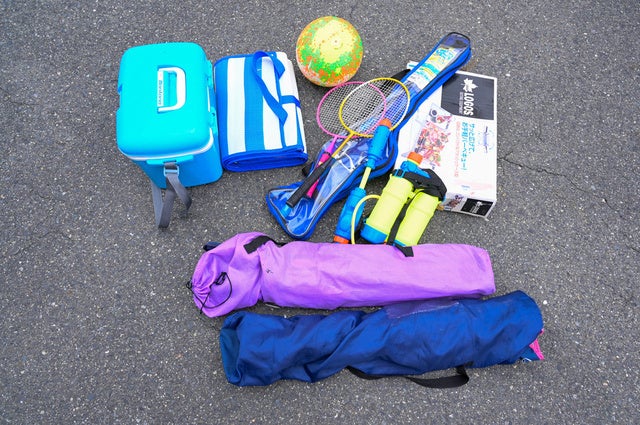 タープ、テント、机、椅子、BBQセットなど、さまざまなレジャーグッズを、自転車で楽々と運ぶことができます。