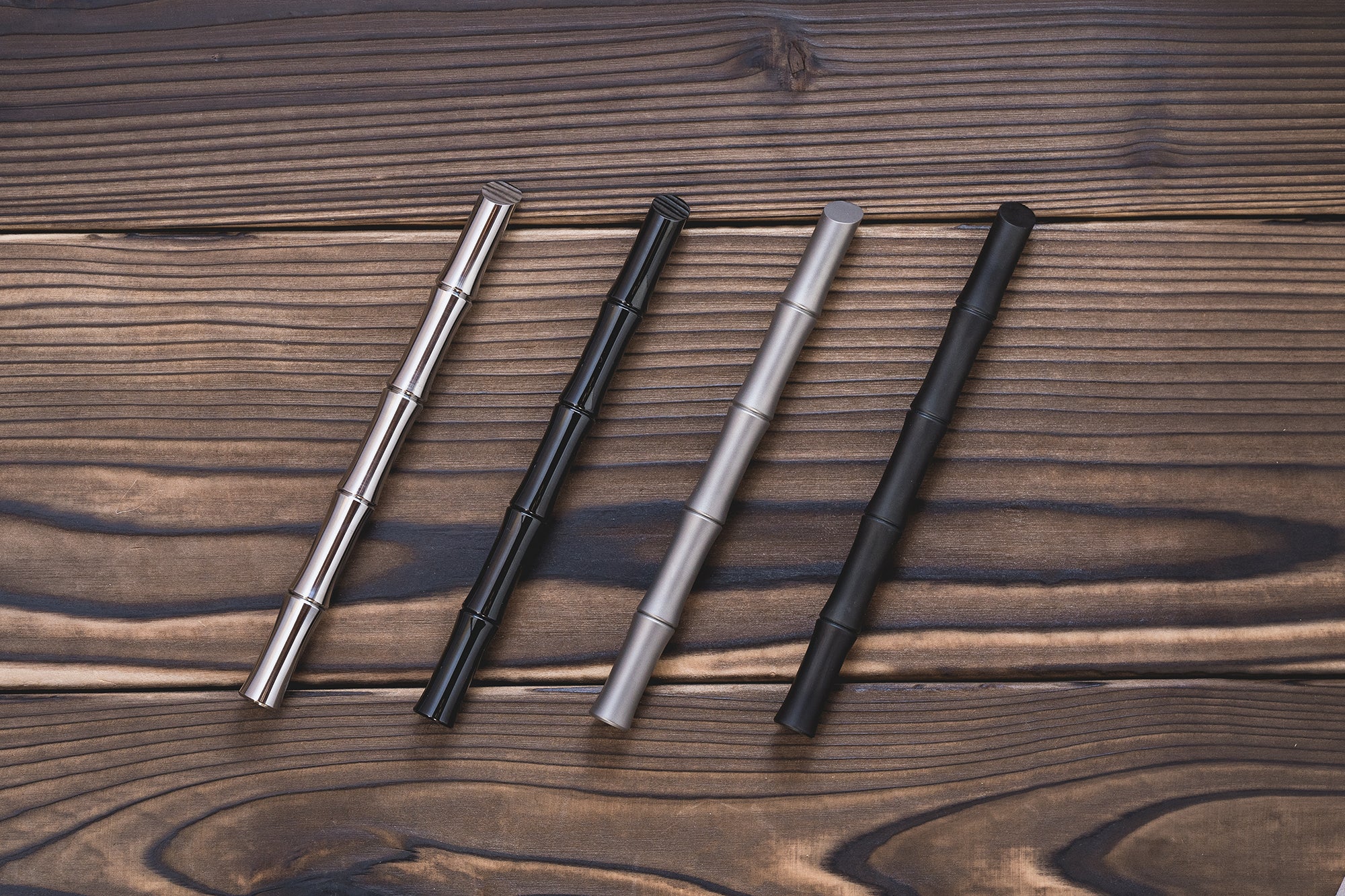 チタンは、光沢のあるナチュラル・鏡面仕上げ(写真左から2本)と、マット(写真右から2本)の2種類をご用意しました。