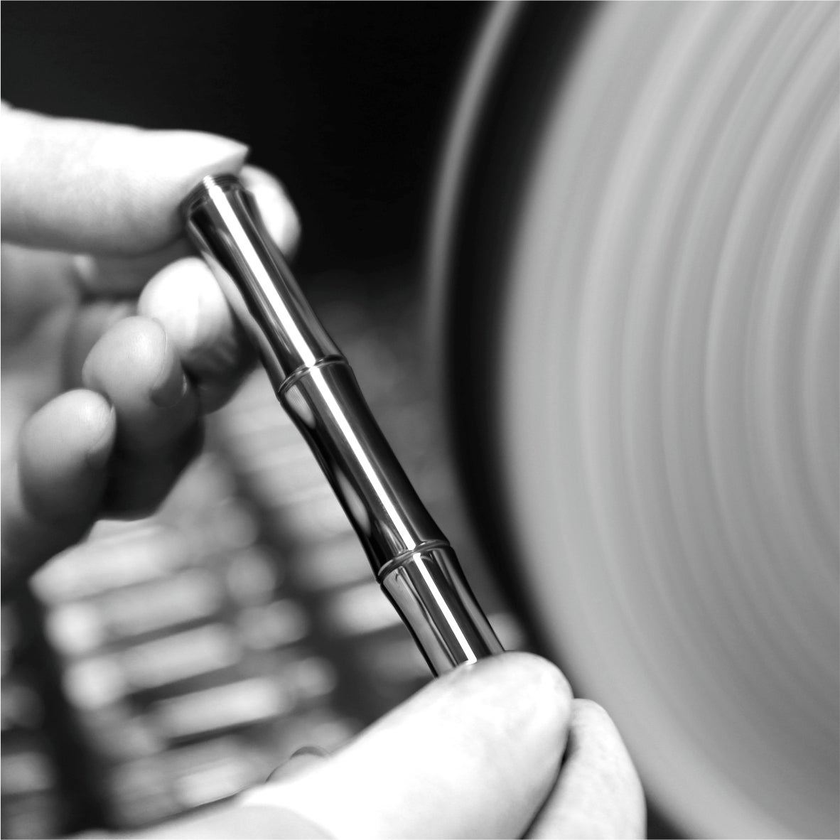 竹型万年筆 「TTi-110」はキャップ部分を含む5つの"ノット"と呼ばれる部分から構成されていますが、一つ一つのノットの設計は計算し尽くされており、どの部分にも曲線を阻害する直線や角などはありません。