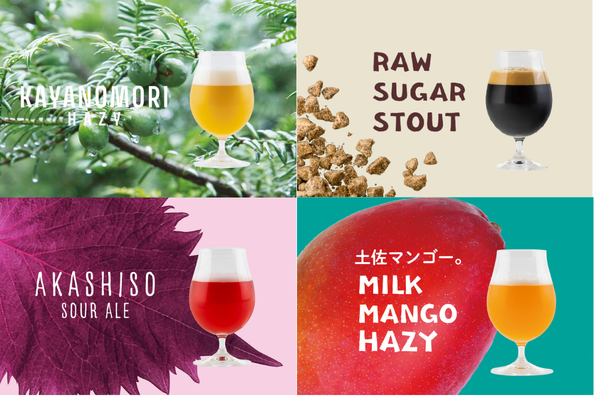 ※「にっぽんの宝物グランプリ(ドリンク部門)」で準グランプリを獲得した榧の実を使用した「榧の森ヘイジー」や、高知県芸西村で製造されている「白玉糖」を使用した「黒糖スタウト」、本山町産の無農薬赤しそを使用した「赤しそサワーエール」、貴重な土佐マンゴーを使用した「ミルクマンゴーヘイジー」