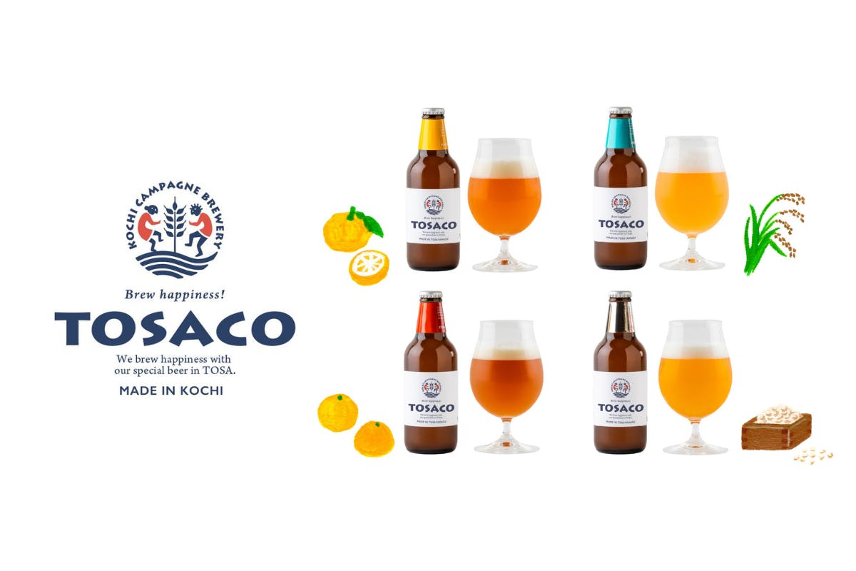 柚子、米、文旦、トマト、ぶっしゅかん、赤しそなど、海と山にかこまれて日照率の高い高知には、たくさんの豊かな食材があります。それと同じ数だけ、情熱を持った高知の生産者さんがいます。そんな「土佐の」生産者さん達が情熱をかけて育てた「子どもたち」=作物を活かしたビールづくりがしたいと想い、TOSACOと名付けました。