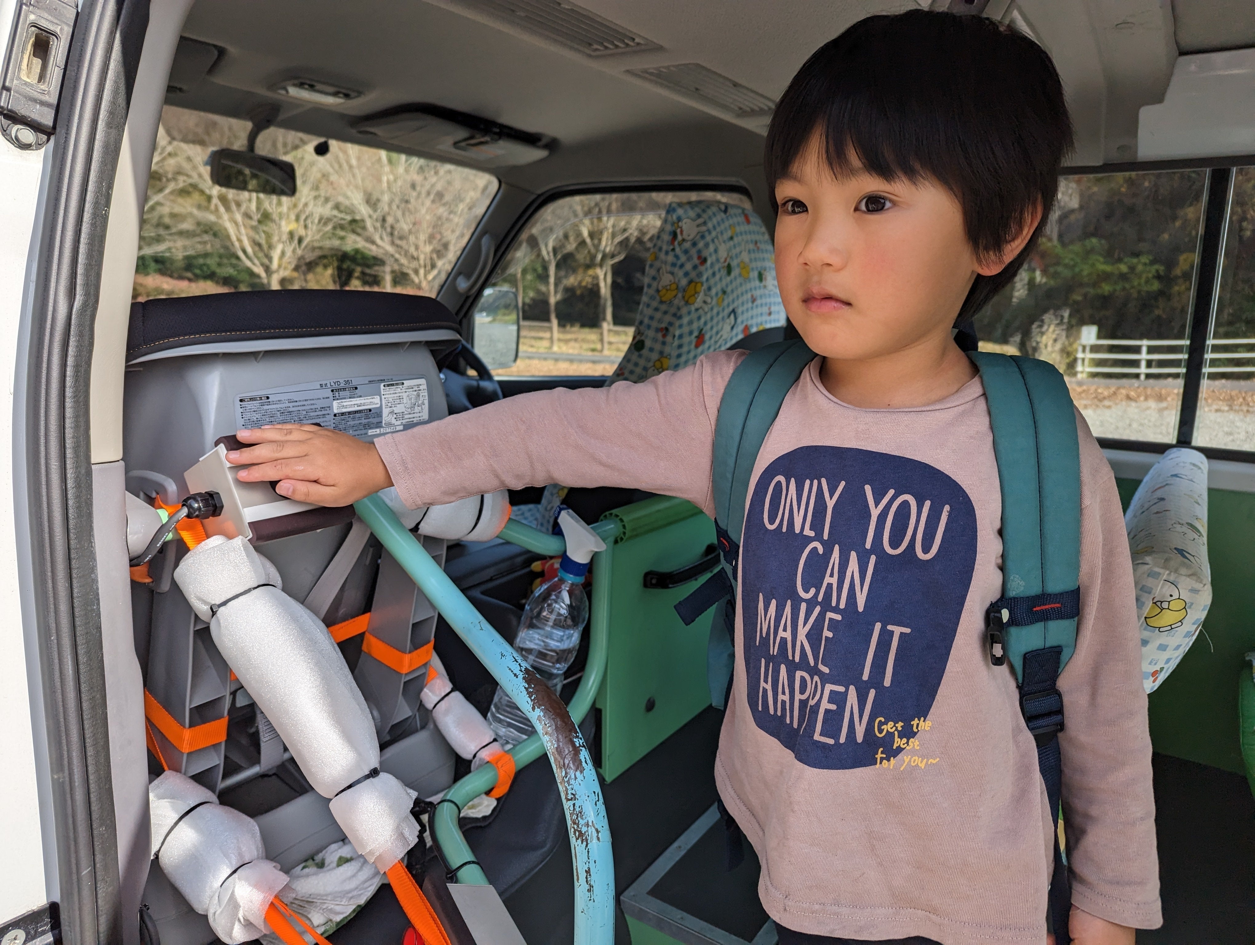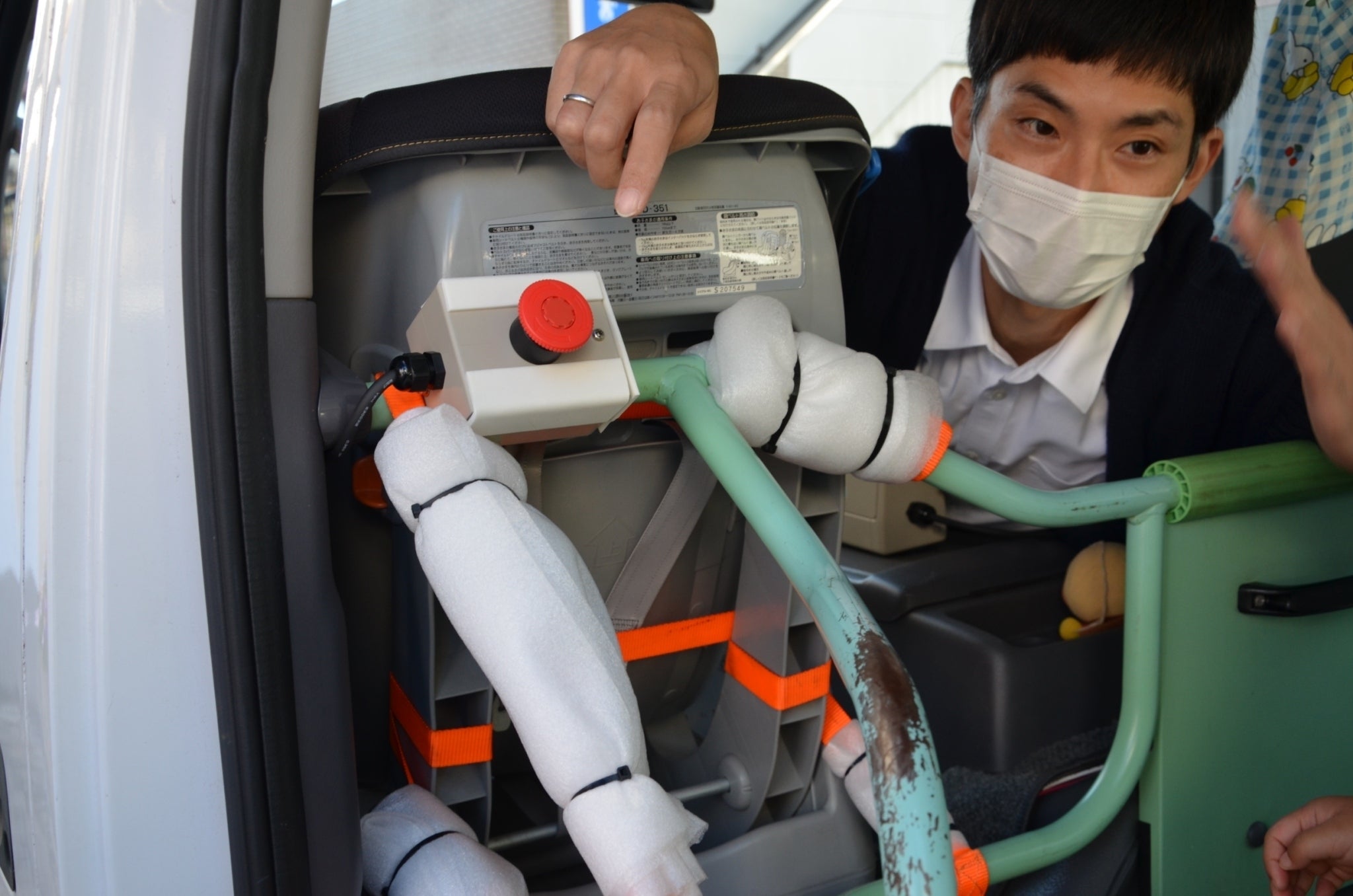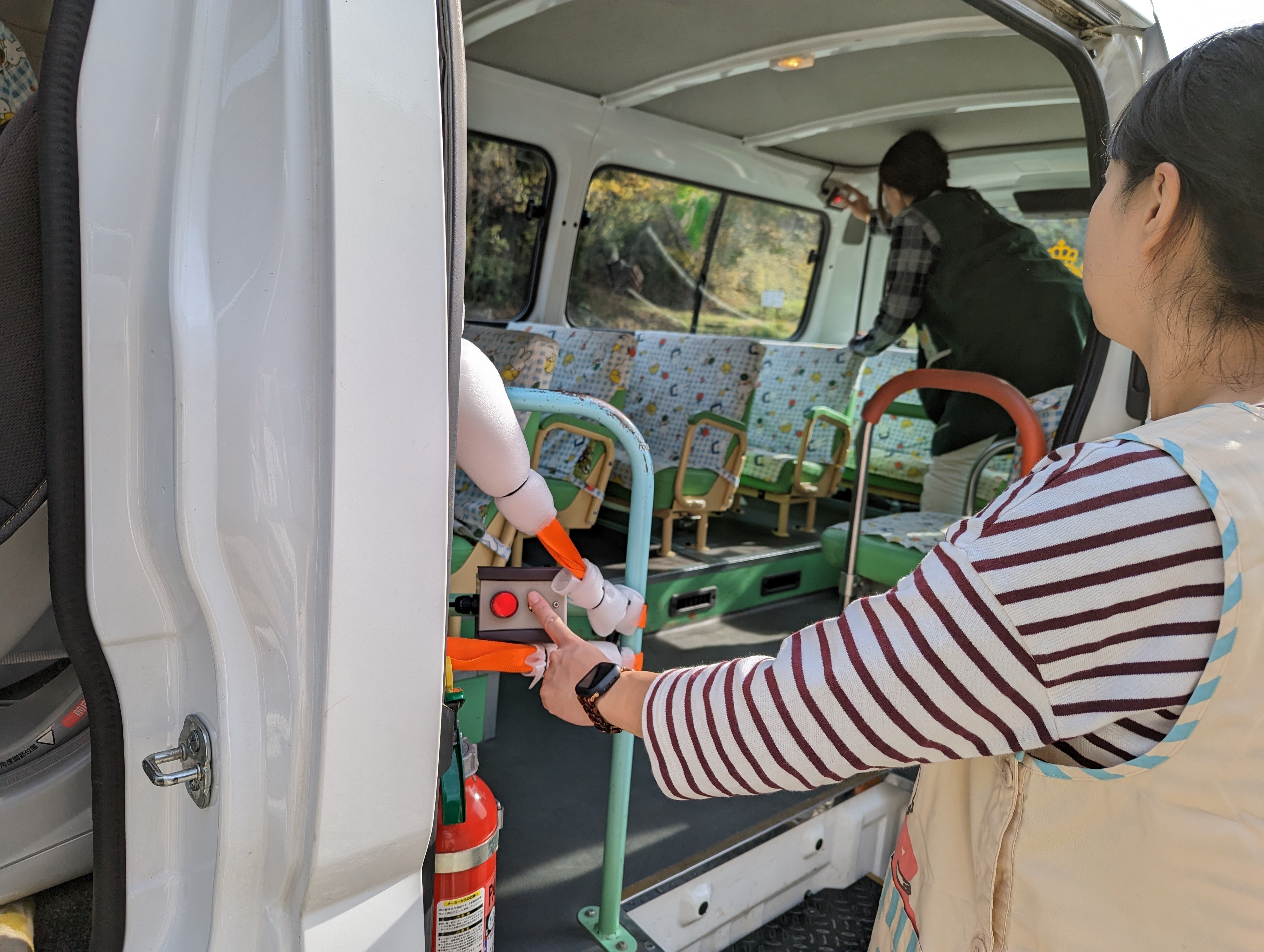 バスを使う時は、送迎だけとは限りません。バスを止めるたびにチェック。