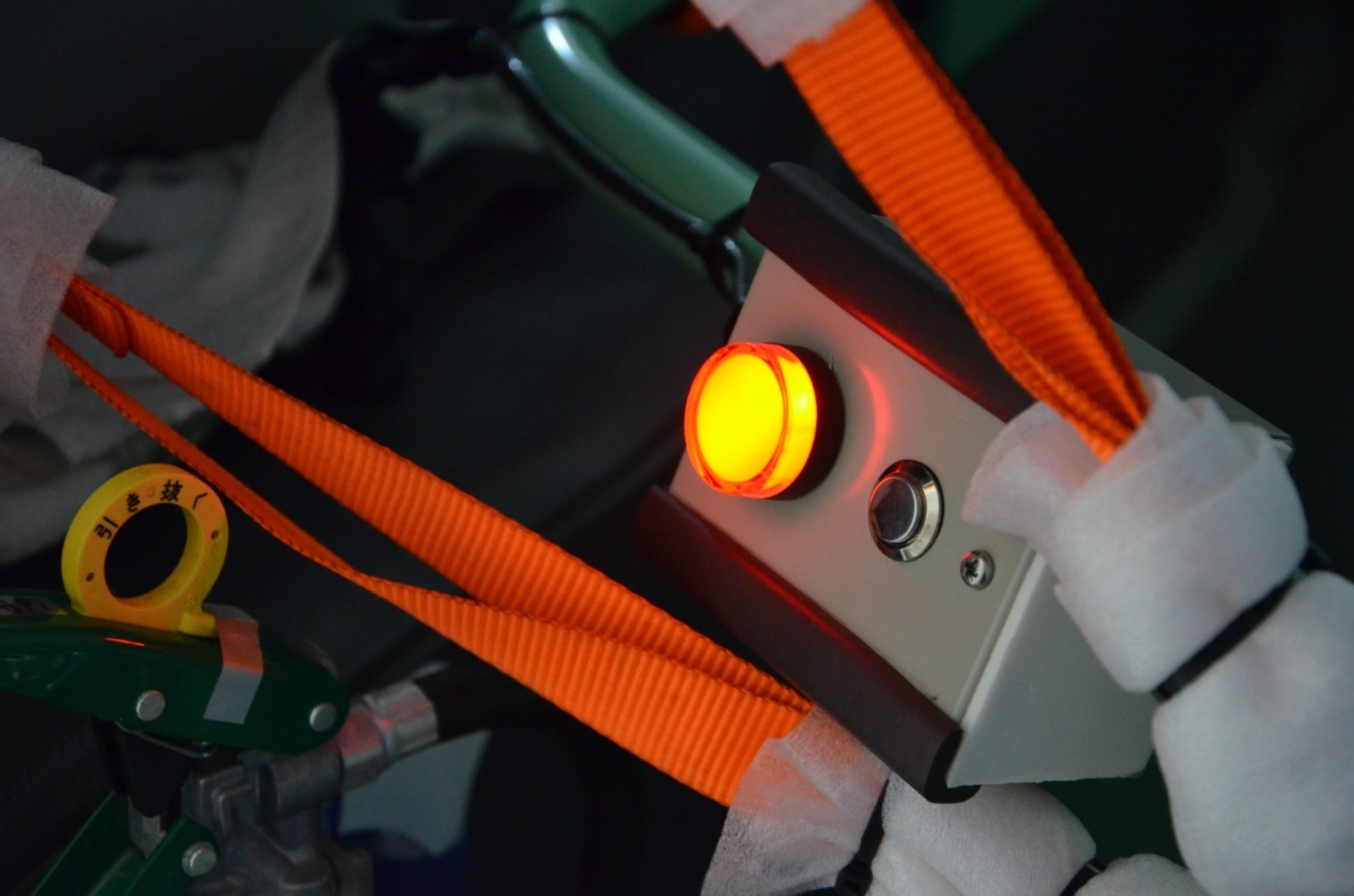 私たちは内部に非常ボタンを配置し、どんな子供でも簡単に押す事ができるシステムを設計。これにより、一度押せばクラクションが鳴り続け、外部に発信されます。