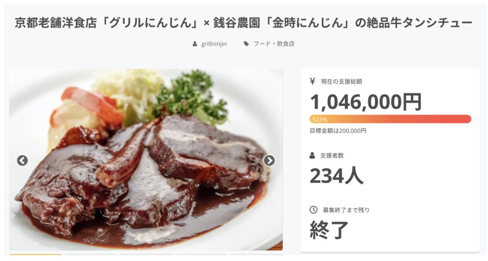 京都老舗洋食店「グリルにんじん」× 銭谷農園「金時にんじん」の絶品牛タンシチュー