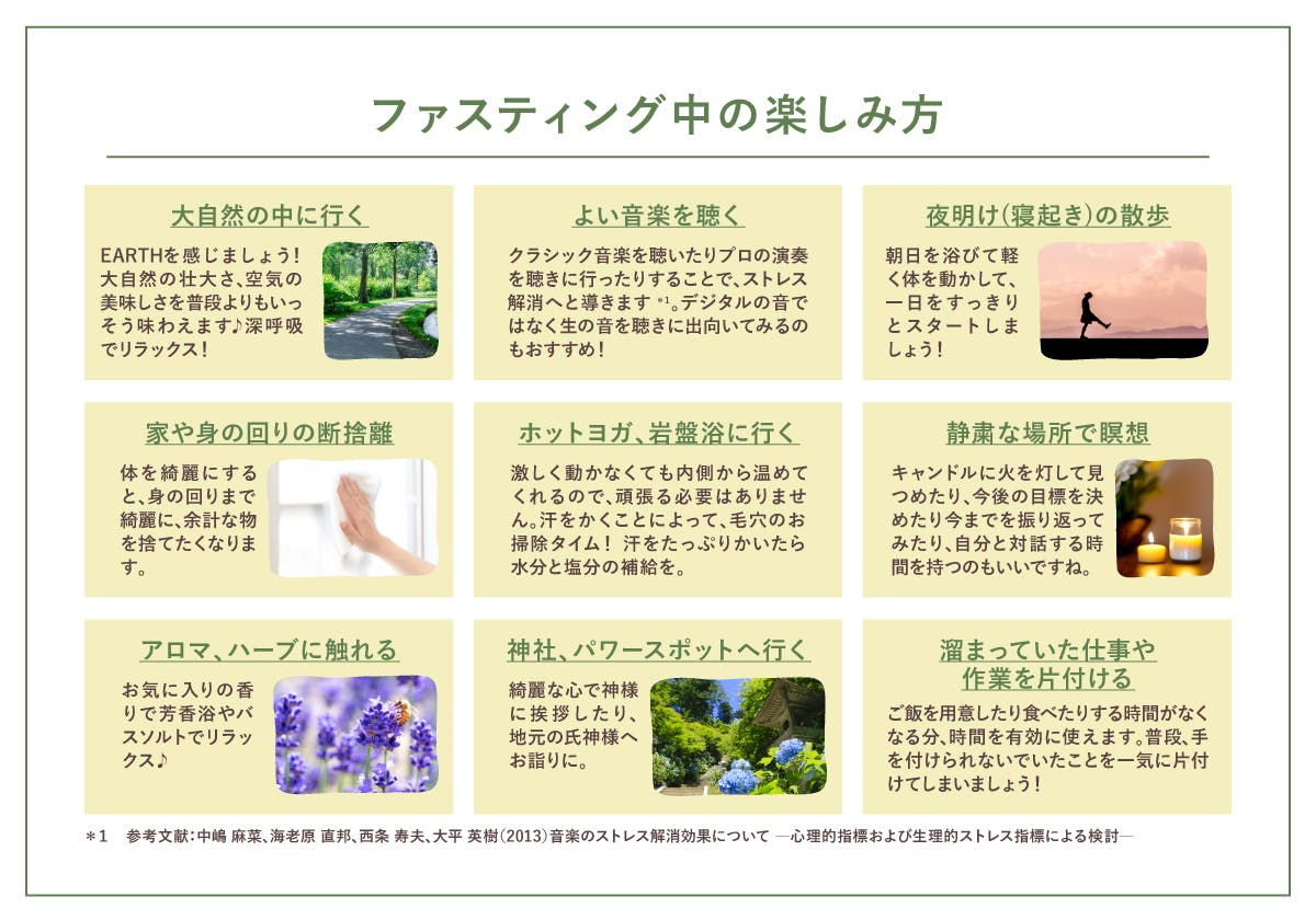 ※予定があってグループファスティングに参加が難しい方向けに、個別スケジュールに合わせたプログラム実施も相談可能です。