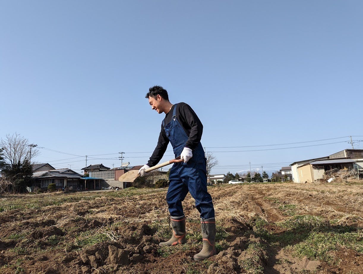 就農して2年目に「ファースト農法」と名付けた独自の有機栽培農法でつくるニンジンで「オーガニック・エコフェスタ2018」夏ニンジン部門最優秀賞受賞。自社で栽培した野菜を使った料理を提供する農家レストラン「Blue Bee」の経営や独自の商品づくりにも取り組んでいる。雨の日も雪の日も365日、畑に立たない日はない。