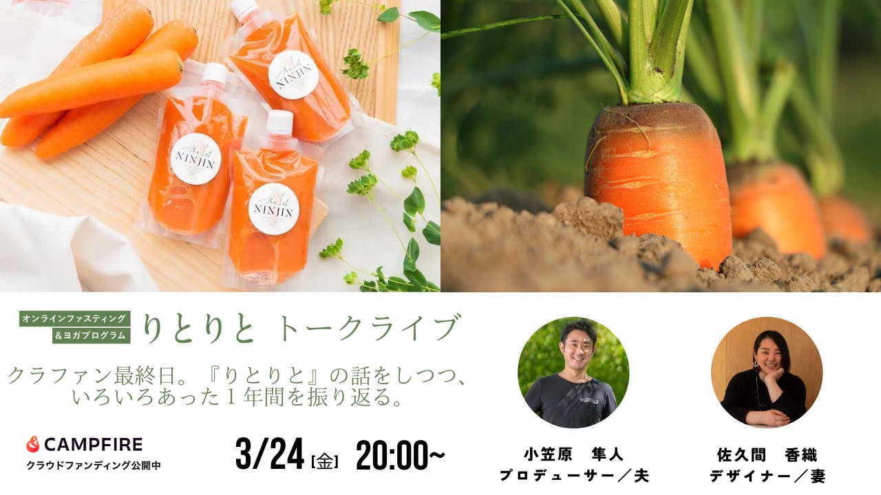 「現代の都市部に暮らす私たちは、知らず知らずのうちにたくさんのものを『摂取』しすぎていることがあります。しかも無自覚に。『食べない』体験を通じて、自分にとってなにが本質的に重要なのか?と問いを立てることができるようになります。ぜひプロの指導のもと1日だけのファスティングに挑戦してみませんか? そして飲んだら『え、これにんじんだけ?!』と必ず驚く甘い有機にんじんジュースで乾杯をしましょう!」