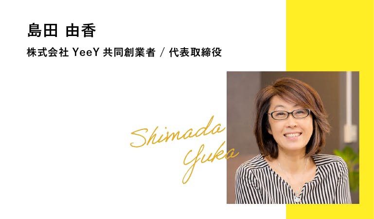 こんにちは。株式会社YeeY共同創業者 / 代表取締役の島田由香(しまだ ゆか)です。個人的なことではありますが、今年の6月末に大好きなユニリーバ・ジャパン・ホールディングス株式会社を退職し、現在は5年半前に立ち上げた株式会社YeeYの代表として日本のウェルビーイングを高めることに毎日情熱を燃やし命を使っています。