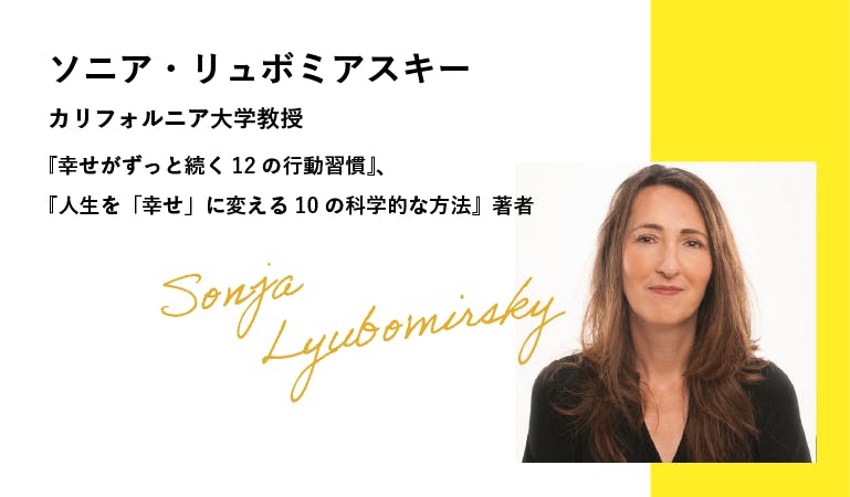 カリフォルニア大学リバーサイド校の心理学卓越教授で、<幸せがずっと続く12の行動習慣>と<人生を「幸せ」に変える10の科学的な方法>(39か国で出版)の著者である。ハーバード大学を最優等位で卒業し、スタンフォード大学で社会心理学の博士号を取得した。リュボミアスキーは、感謝・やさしさ・つながりの介入プログラムを通じて持続的に幸福感を高める可能性に関する研究を進め、多くの研究奨励賞や表彰を受けてきた。その主なものに、バーゼル大学名誉博士号、中堅研究者のパーソナリティ心理学に関する卓越した貢献へのディーナー賞、クリストファー・J・ピーターソン金賞、卓越研究講義賞(勤務するUCリバーサイド)、テンプルトン・ポジティブ心理学賞がある。