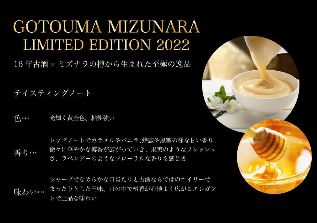 実際に製品を飲んでみて、立ち上がる香りには ハーバル・清涼感・バニラ・ウッディ・林檎・甘い伽羅・を感じることができます。 口に含んだ印象は、アタックの柔らかさと共に口の中に広がる軽すぎず重すぎず心地よい甘味。 複数回蒸留する世界中の蒸留酒は、華やかで鼻から抜ける香りも強いのですが、 1回の蒸留でも50度前後のアルコールを生み出せる泡盛だからこその 味わいの重厚感、穏やかな余韻はぜひこれまでの蒸留酒との違いを探していただきたいポイントです。 食後酒として、ロックやストレートで飲むのがおすすめです。 ペアリングにはチョコレートなどの油分が多いものではなく、ドライフルーツや、熟した果物と合わせるとよりお互いが高めあえるでしょう。 五頭馬は、まさひろ酒造のトップブランド。 その意味は、御用する馬。 御用馬をかけており、献上品や、大切な客人をもてなす為に着飾り、選ばれし名馬 まさに、泡盛という名馬にミズナラの樽香、余韻を品よく着飾った素晴らしい蒸留酒です。 泡盛がこれまで歩んできた600年の歴史に寄り添い、また未来への可能性を探求させていただきました。 これからも楽しみにしています。