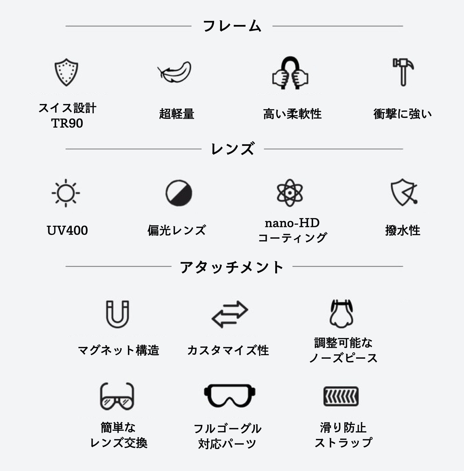 さまざまなアウトドアスポーツに最適なフィット感・クリアな視界・パフォーマンスを提供するサングラスを実現し、見える世界を変えたいという思いが込められています。