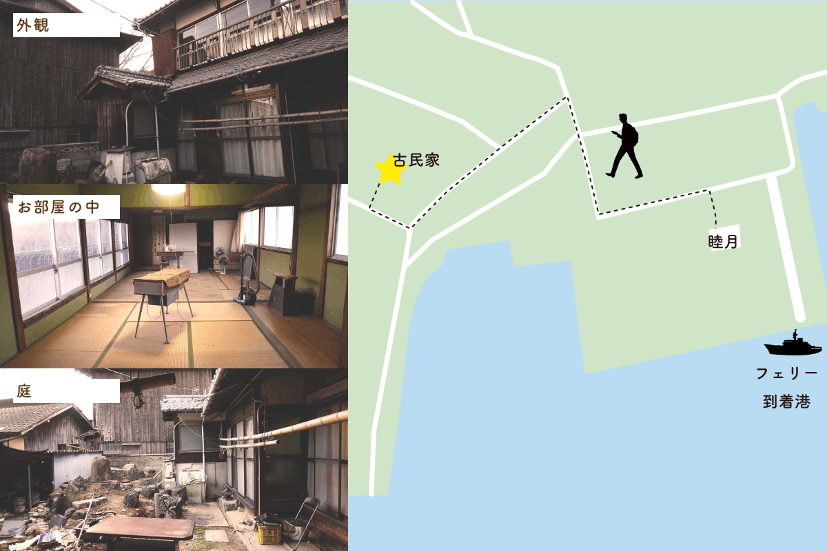 ▼「暮らすように滞在が出来る場所」の予定となる古民家がこちら(島の唯一の港である睦月港より徒歩3分)