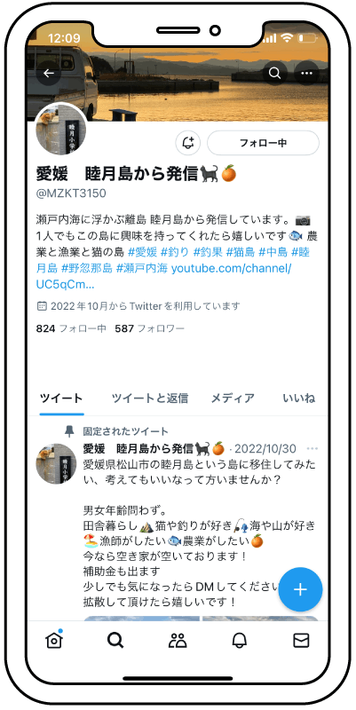 など沢山の関心が寄せられもっともっと島の魅力を知ってもらいたい!という気持ちでいっぱいです。そして大変嬉しいことにTwitterを開設し1カ月の間で島に訪れてくれた方が3組もいらっしゃいました!