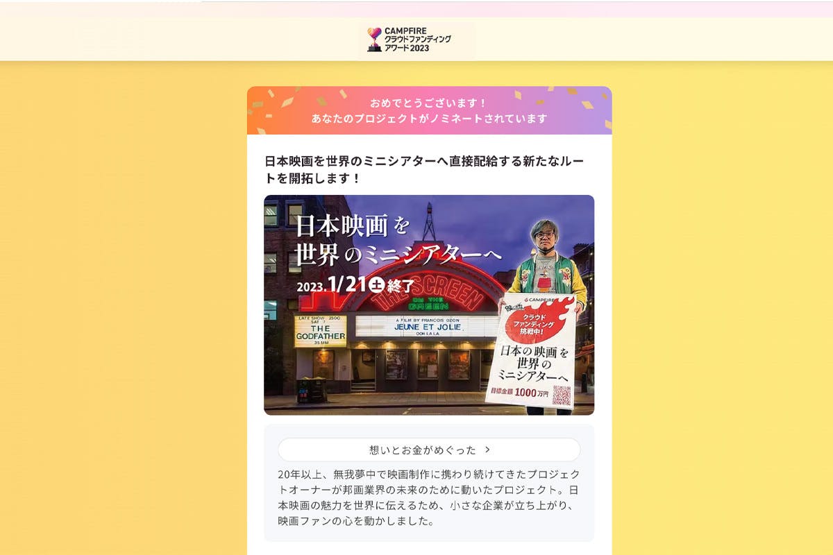 CAMPFIREクラウドファンディングアワード2023の候補に選出されました!【ご投票お願いします】