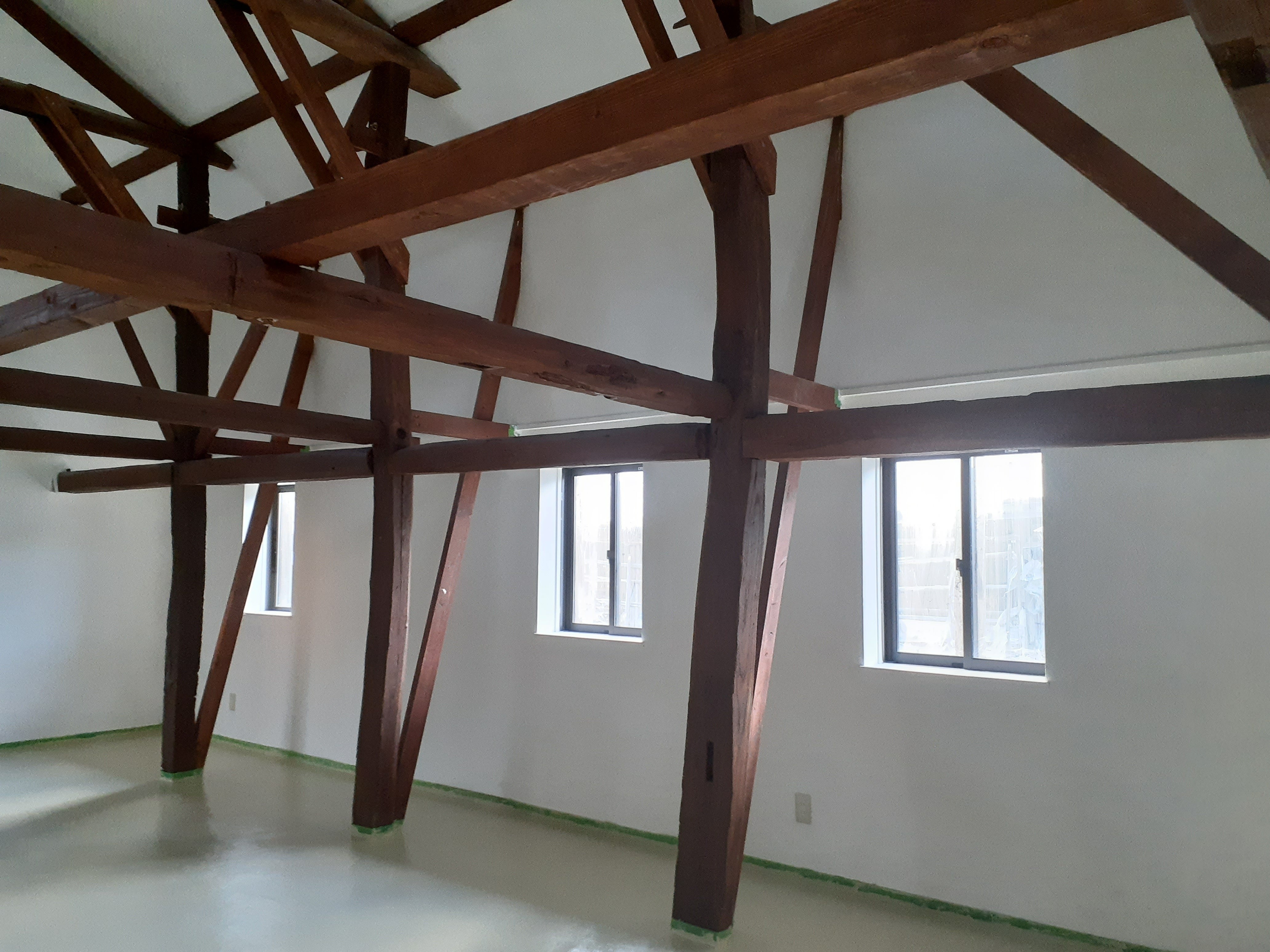 蔵の中の写真です。ほぼ物置として使用しています。ところどころ補修をしていますが、梁は建築当時のまま、しっかりと残っています。