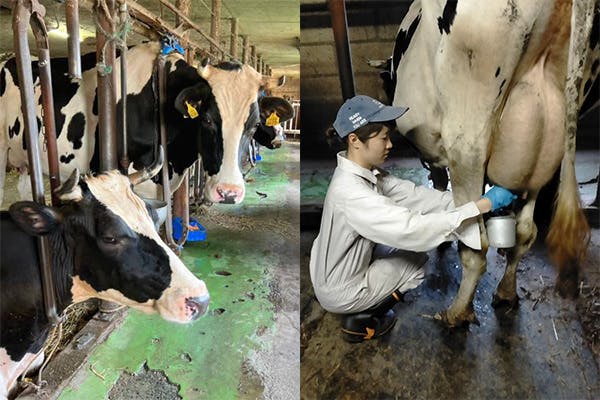 乳搾りをしているのは、2017年に初めて社員として雇用した千佳ちゃんです。