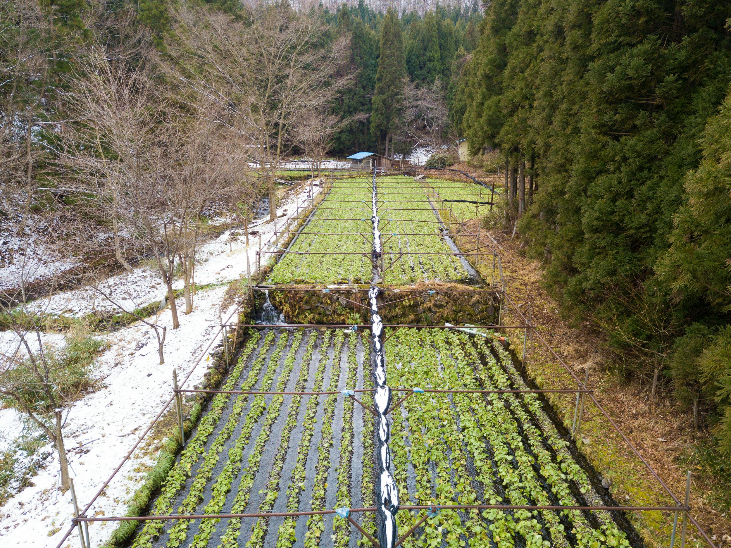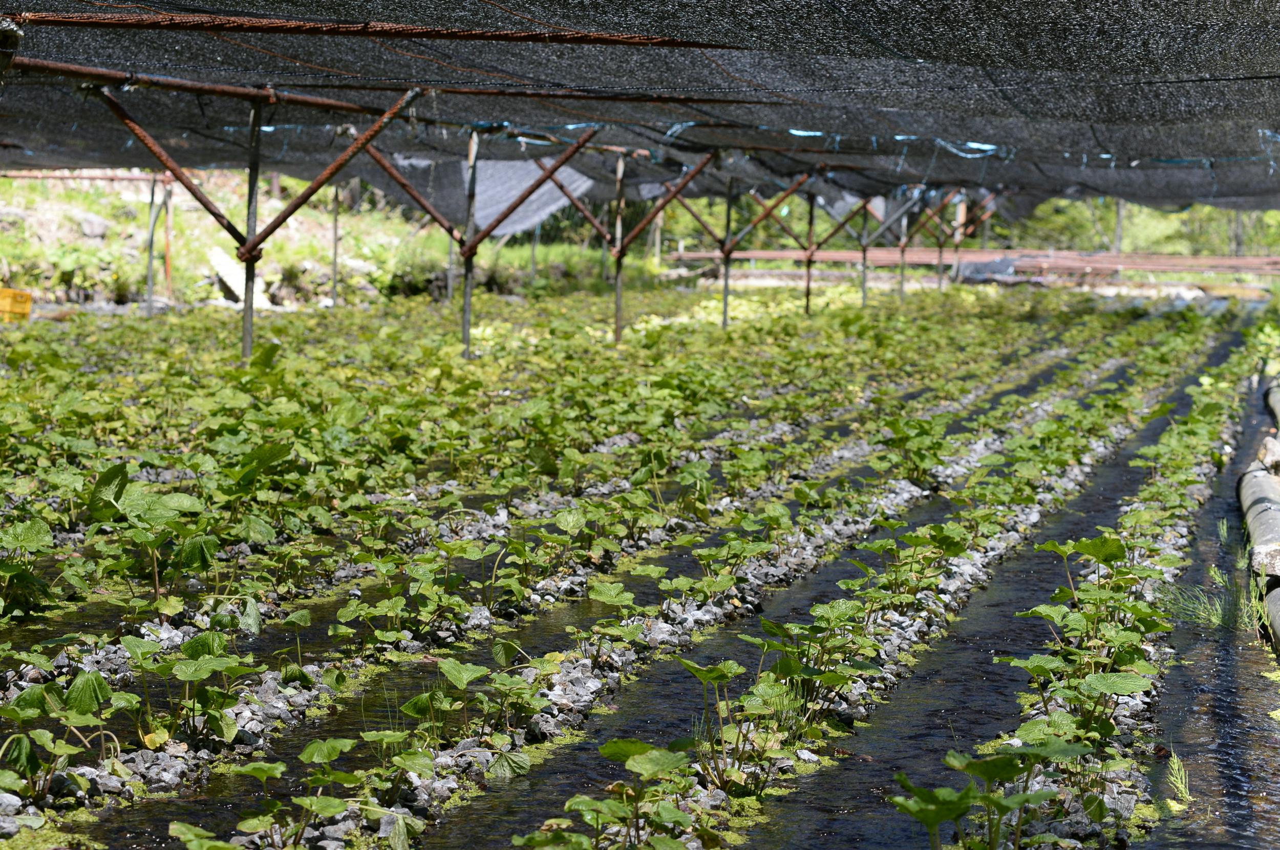 佐原には、吾妻連峰の豊富な伏流水が湧き出る場所があり、その貴重な環境を生かしてわさび栽培が行われています。