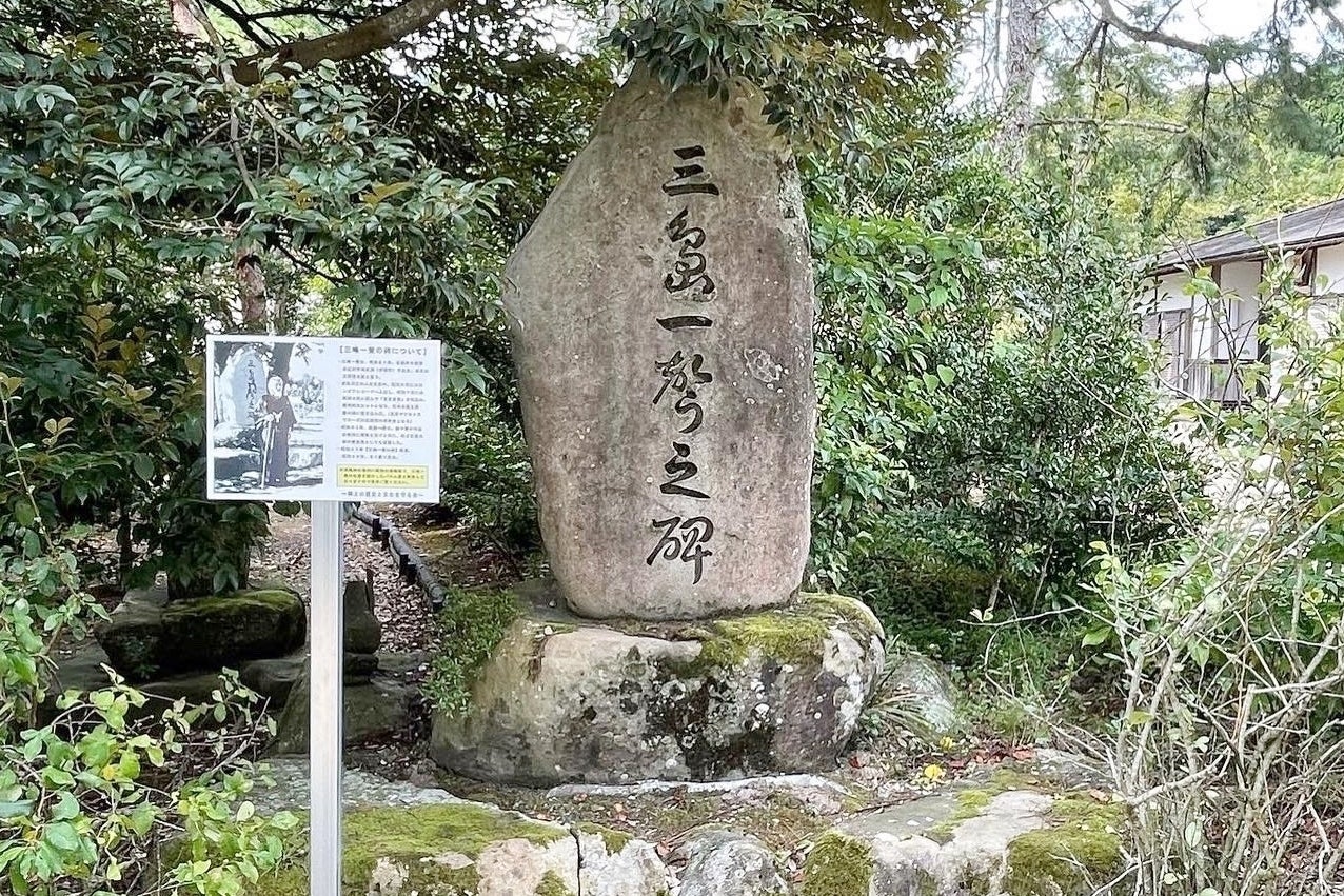 昭和47年に、浦嶋神社の境内に『三嶋一聲の碑』を除幕したが、昭和49年7月19日、87歳で死去した。