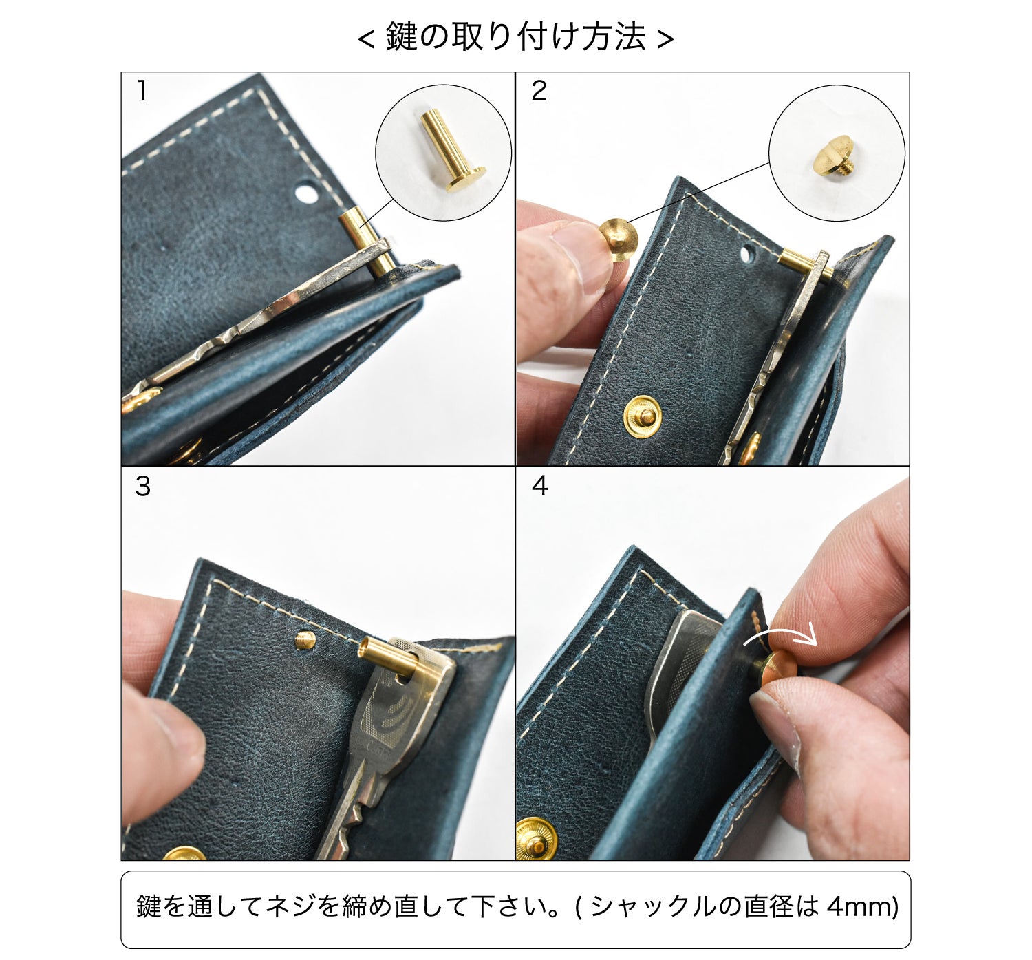 鍵の取り付けは、下記手順で簡単にできます。