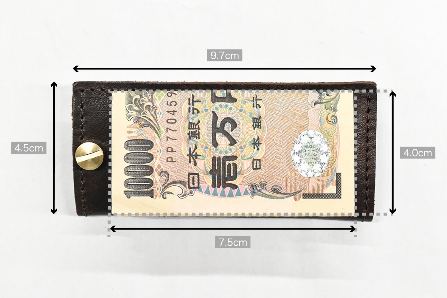 一万円札:4.0cm / 五千円札:3.9cm / 千円札:3.7cm