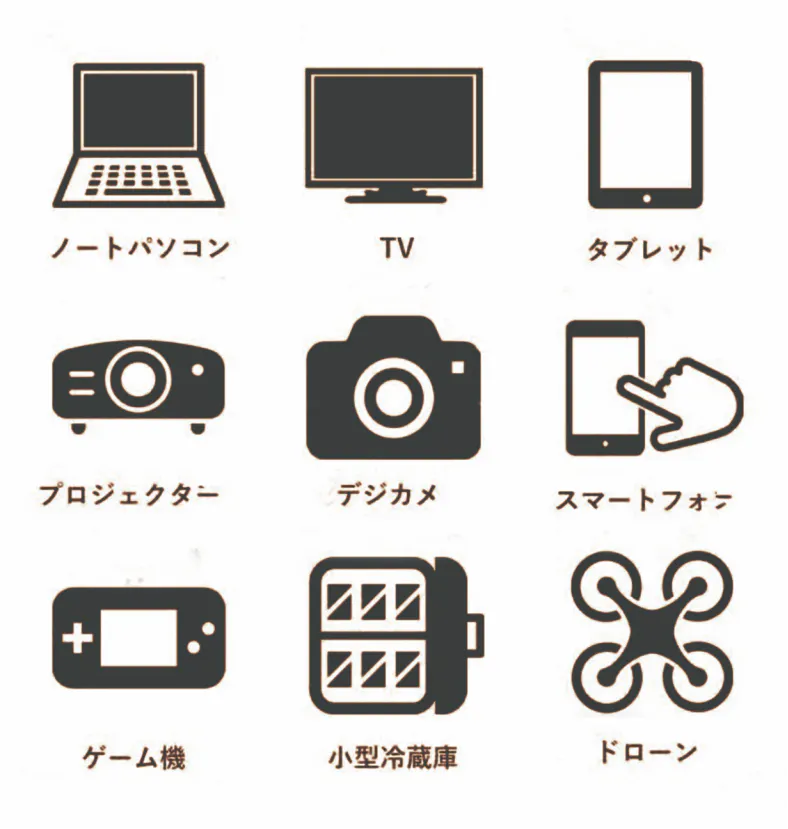 スマホ、タブレット、ゲーム機等のモバイル機器だけではなく、MacBookやSurfaceなどのノートパソコンまで幅広く充電できます。