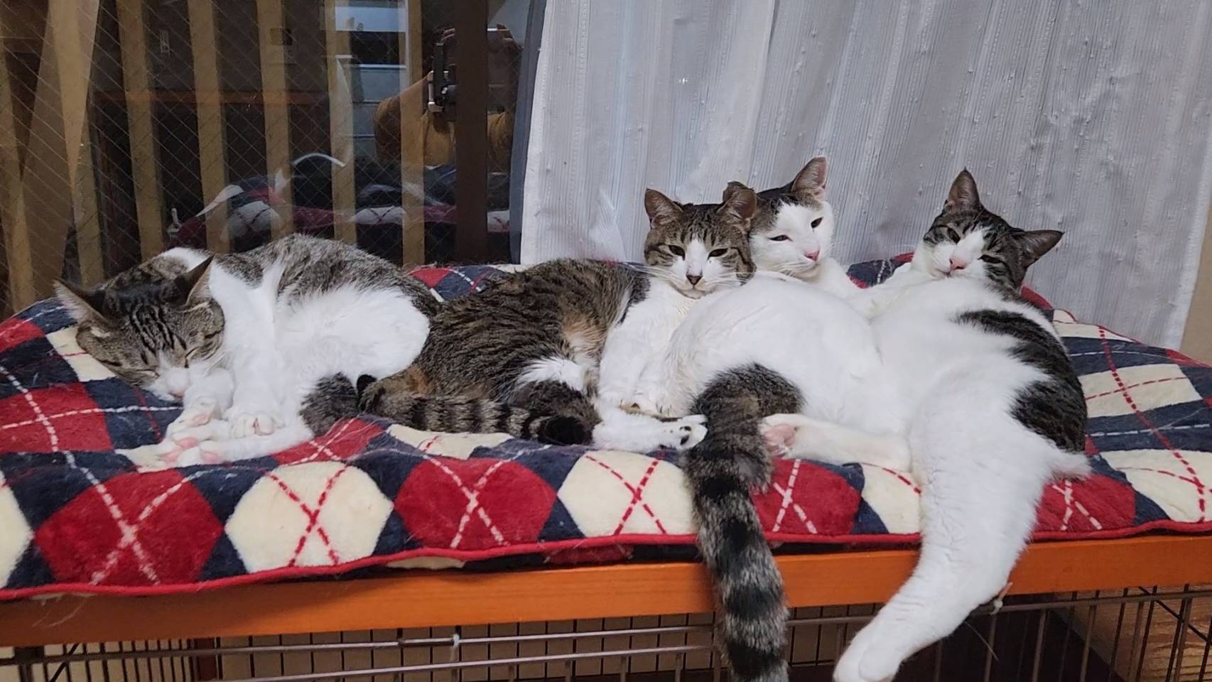 窓辺でくつろぐ保護猫たち