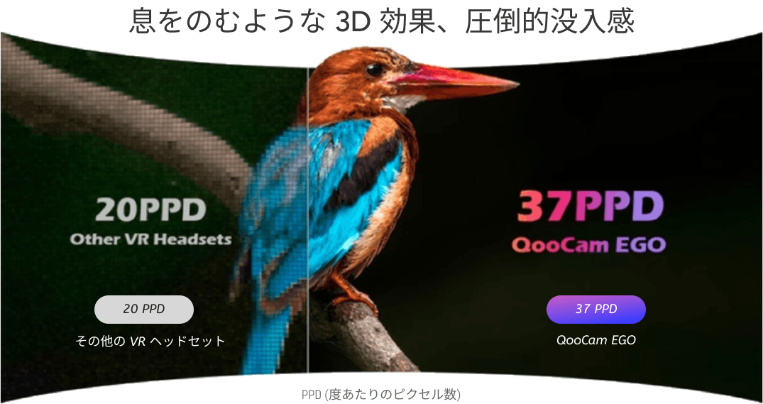 3DビューワーのPPD(Pixel per degree)は、従来のヘッドセットと比較して約2倍です。3Dビューワーを装着し、当社のフルHDディスプレイ技術と組み合わせることで、より臨場感のある体験が可能になります。