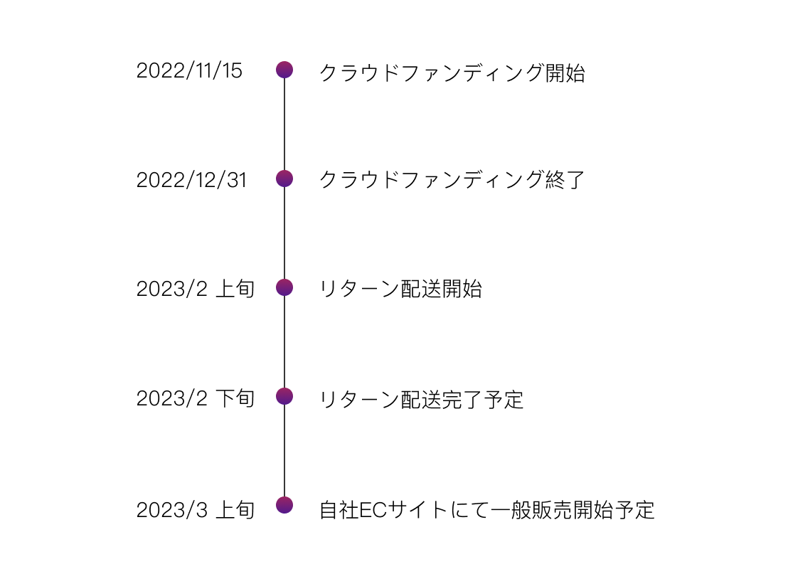 保証期間はお届け日から1年です。保証請求を行う際、製品パッケージに記載されているSN「シリアルナンバー」とCAMPFIREでご支援頂いた際に発行された支援番号が必要となります。また製品の状態を確認するため、動画や写真のご提供、一時的にお預かりして現品確認をお願いさせて頂く場合がございますのでご了承ください。
