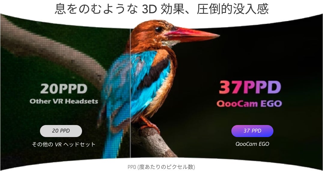 また、QooCam EGOのレンズ間隔は人間の目の瞳孔距離に近く、左右の視差が合わさ流ことで、より人間の目の見え方に近い立体感を得ることができます。単眼の解像度は静止画なら4000×3000、動画なら1920×1080*60fpsで鮮明でスムーズな映像が楽しめます。