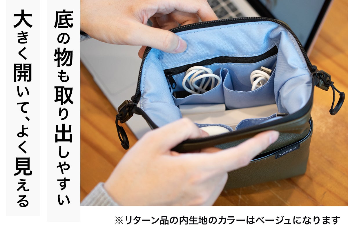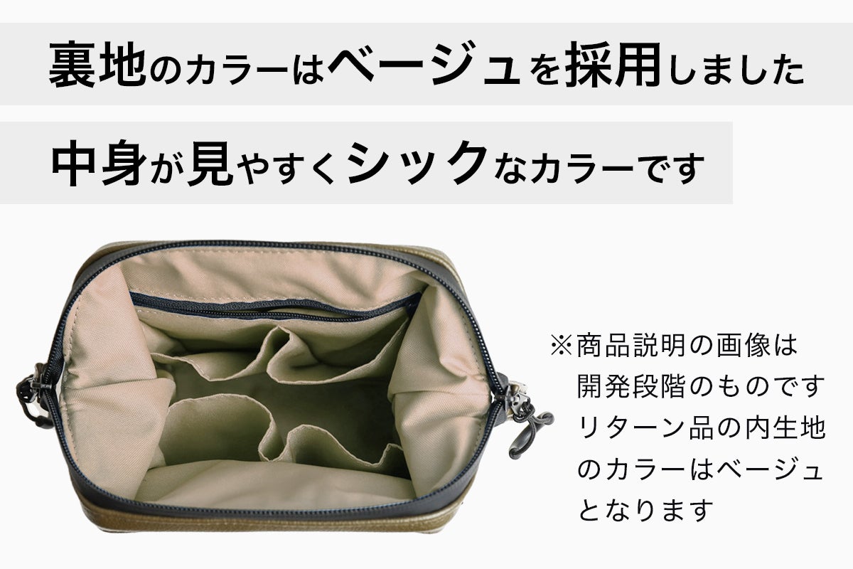ポーチ内生地(裏地)のカラーはベージュを採用し、視認性を高めました