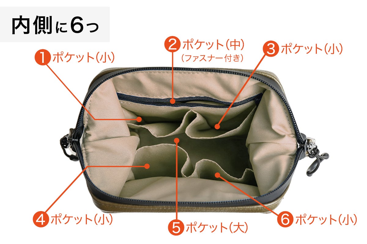 ※当ページに掲載されている「デイズポーチ(カフェ・カラー)」は製品前の試作サンプルで写真・動画撮影しております。そのため、お届けする製品とは、内生地のカラーが違うなど、一部仕様が異なる場合もございますので、予めご了承ください。