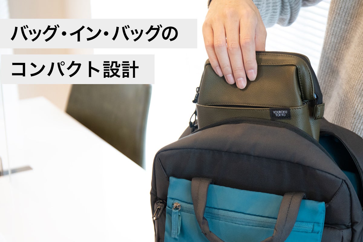 「デイズポーチ」はノマドワーカー目線で設計されているので非常にコンパクト。バッグ・イン・バッグとしても携帯しやすいサイズで、ビジネスバッグはもちろん、ハンドバッグにもすっぽり入ります。