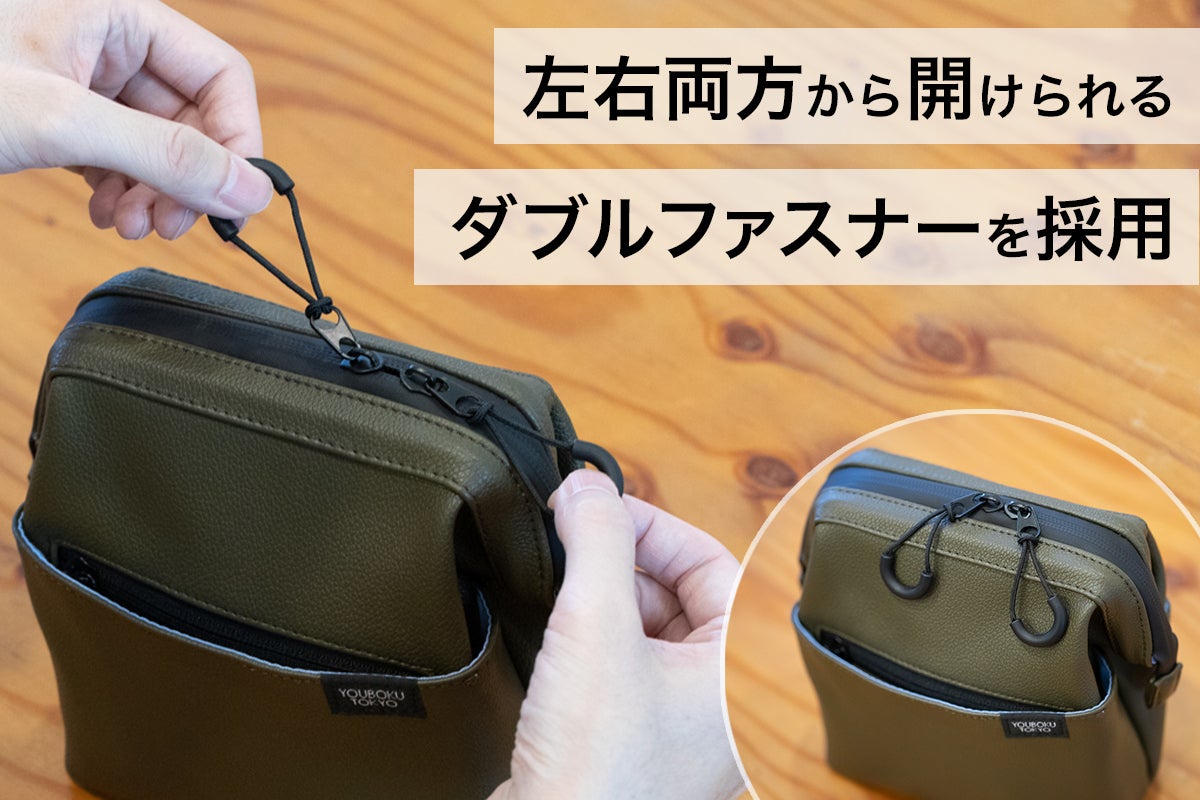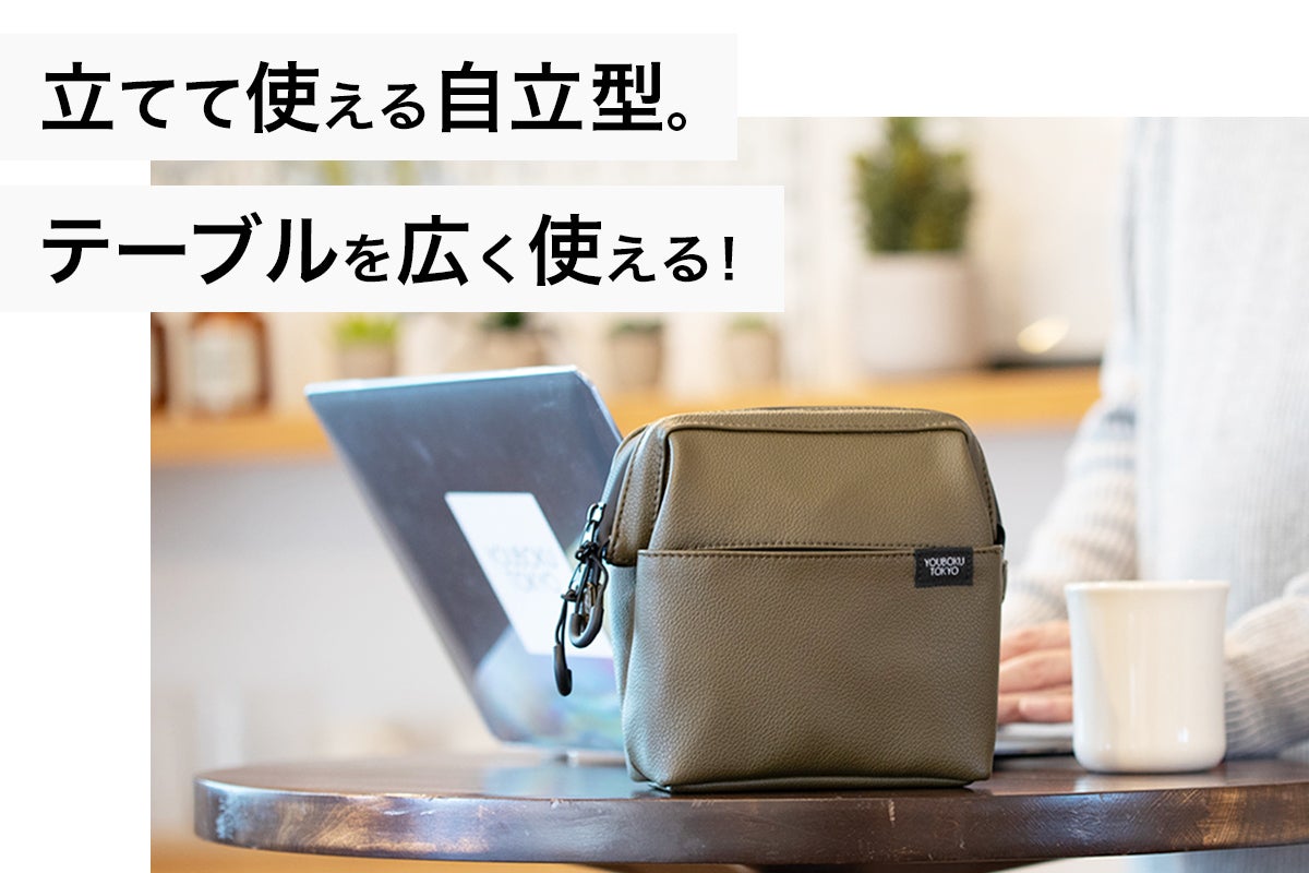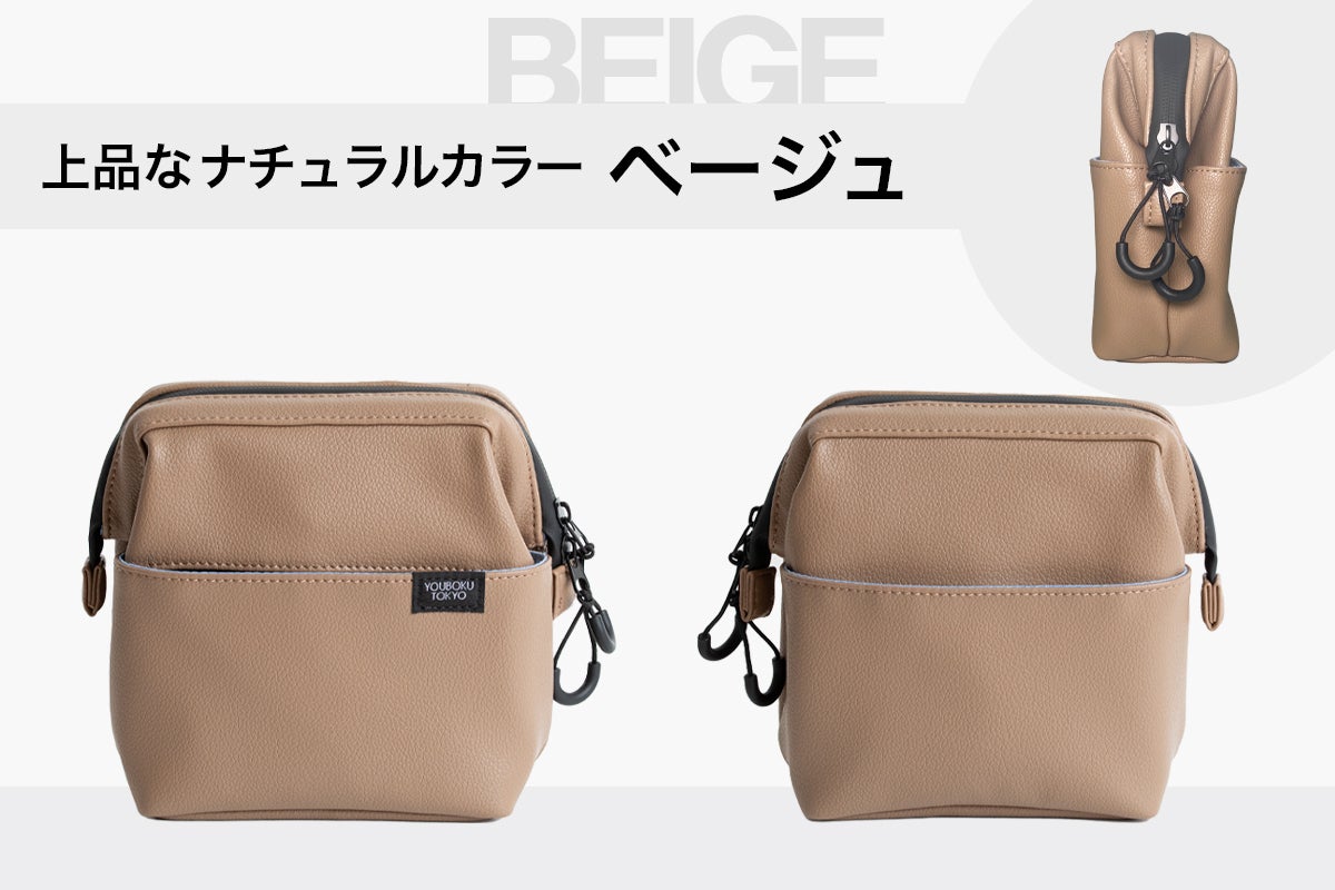 そして今回、ユーザー様からの「大人が使ってもお洒落で、高級感のあるカラーのデイズポーチがほしい」というリクエストにお応えして、落ち着いた雰囲気で使うシーンを選ばないベージュと、クールモダンな印象を与えるカーキの2色を、新たに「デイズポーチ(カフェカラー)」としてリリース。フェイクレザー(合成皮革)張りの、高級感のあるデイズポーチが誕生しました。