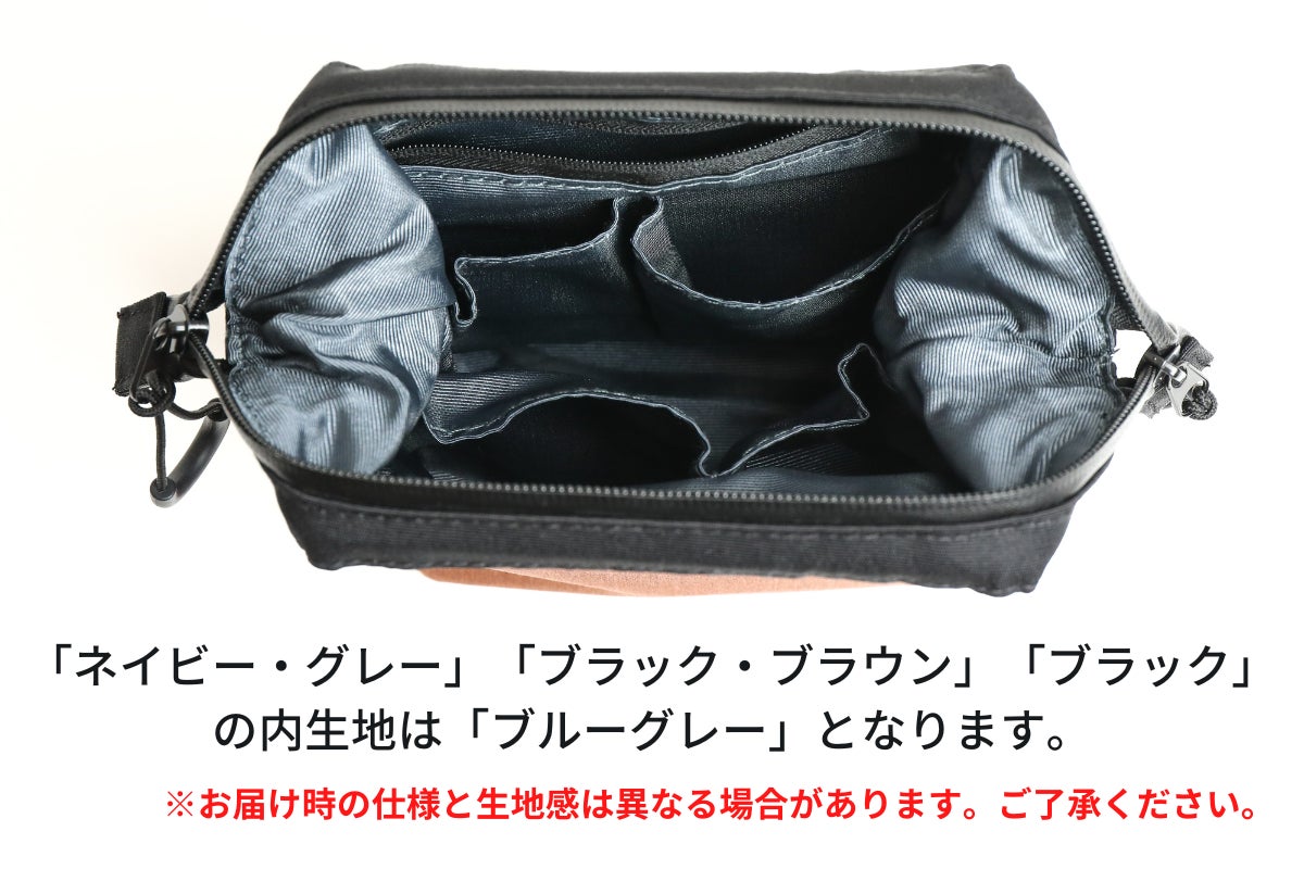 ※「ネイビー・グレー」「ブラック・ブラウン」「ブラック」のデイズポーチでは、内生地は「ブルーグレーカラー」となります。ご注意ください。