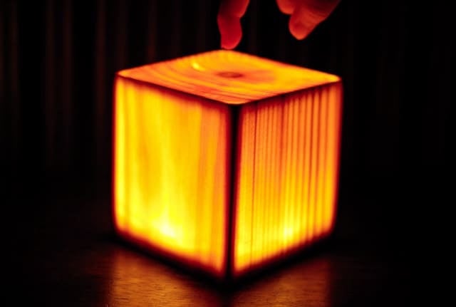 明かりを灯すと木目が浮き出て独特の光を放ちます。