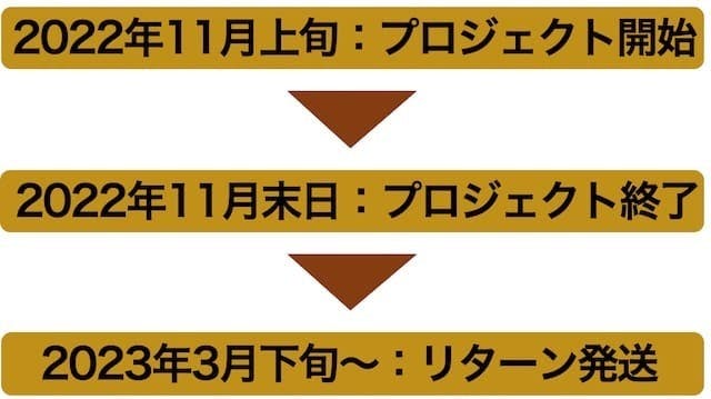※本文中に記載したスケジュールについては、あくまでプロジェクト公開時点の予定となります。ご支援数などが想定を上回った場合や、製造工程上の都合や工場の状況等により出荷時期が遅れる場合がございます。