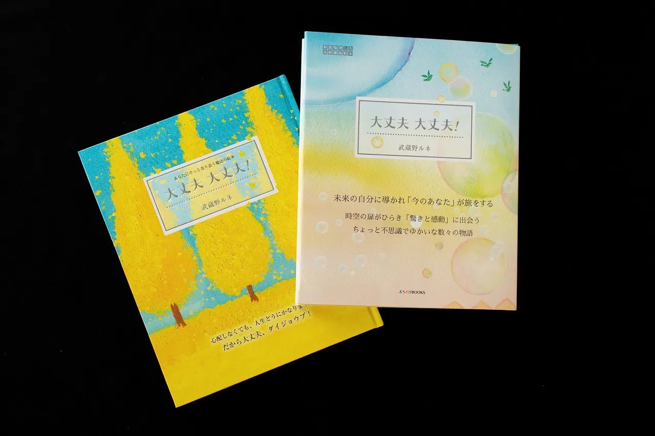 『大丈夫 大丈夫!』は、武蔵野ルネさんの自伝的なストーリーを「未来の自分」が「いまのわたし」に寄り添い、導き、山あり谷ありの道のりをゆっくりと進んでいくという「時空」を超越した世界での逸話を1冊の絵本としてまとめられています。この不思議な、でも誰にでもあるような身近な世界で起こる、数々の日常的な出来事が描かれています。