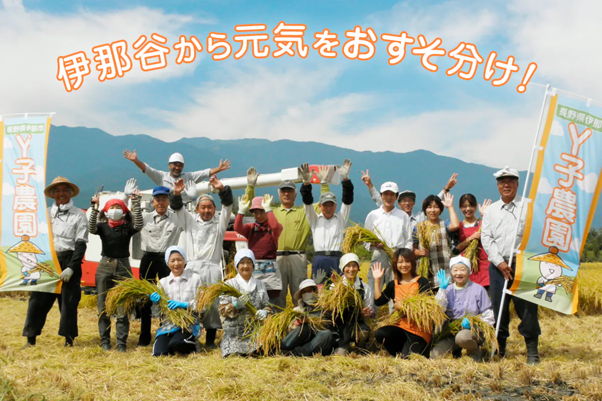 南アルプスと中央アルプスが東西の双璧をつくり、天竜川で運ばれた肥沃な大地に恵まれて米・りんご・野菜、そして近年ではアルストロメリアの産地としても有名となった長野県・伊那市。その「伊那谷」から、「Y子(武蔵野ルネ)さんの支援のためなら馳せ参じましょう!」と「農事組合法人 田原」の方々が見事な農産品をリターン品として出してくださいました。