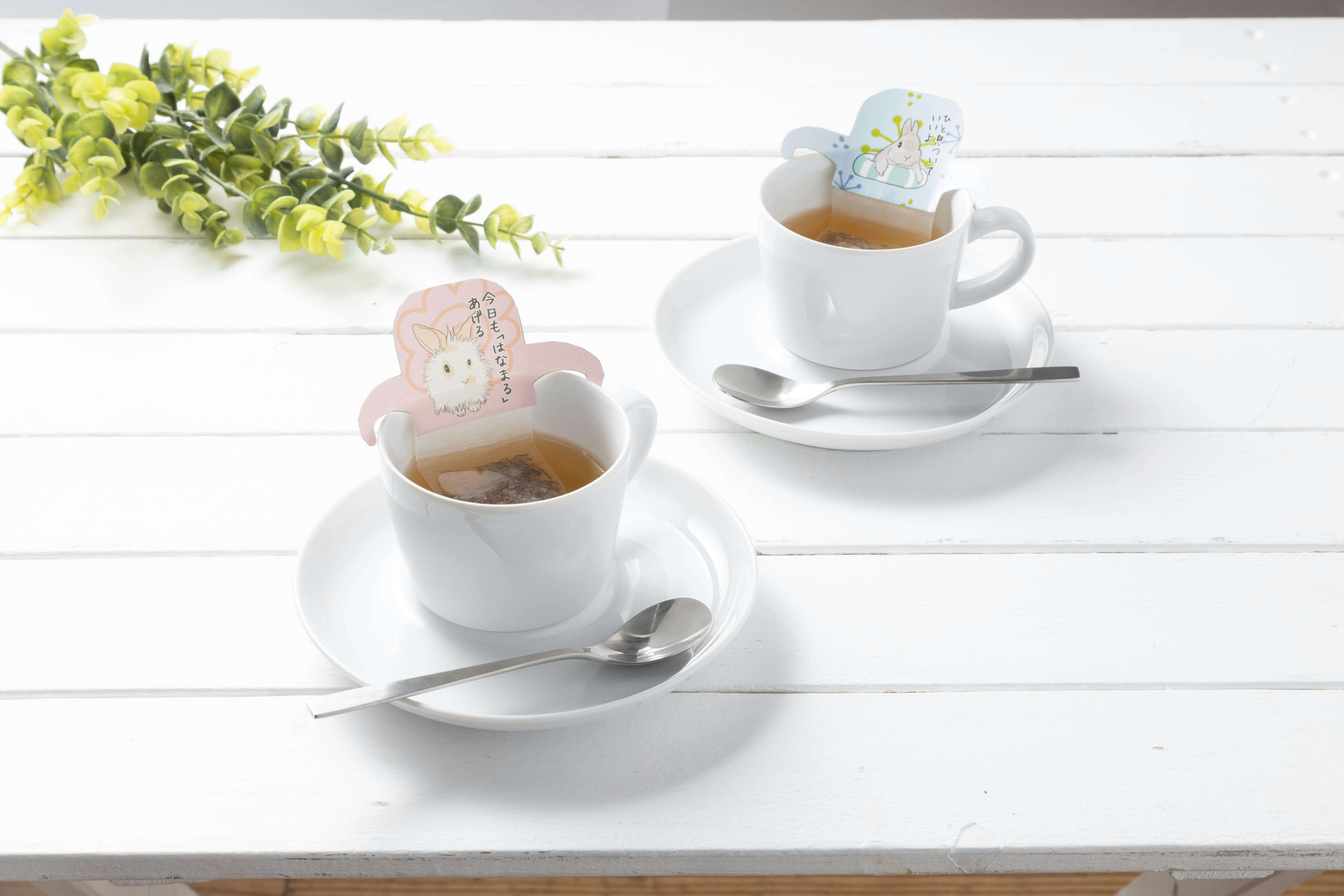 お湯を注ぐと、カップからひょっこり顔を出すうさぎが可愛い。茶葉を蒸らす時間も楽しいキュートなティーバッグです。