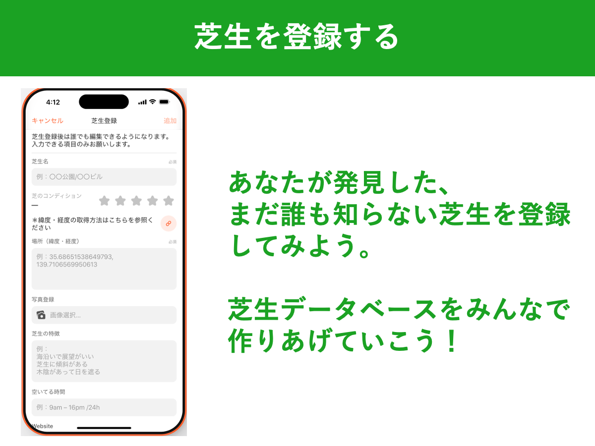 「人」と「芝生」との出会いを生み出すアプリ『シバコロ』を制作します!