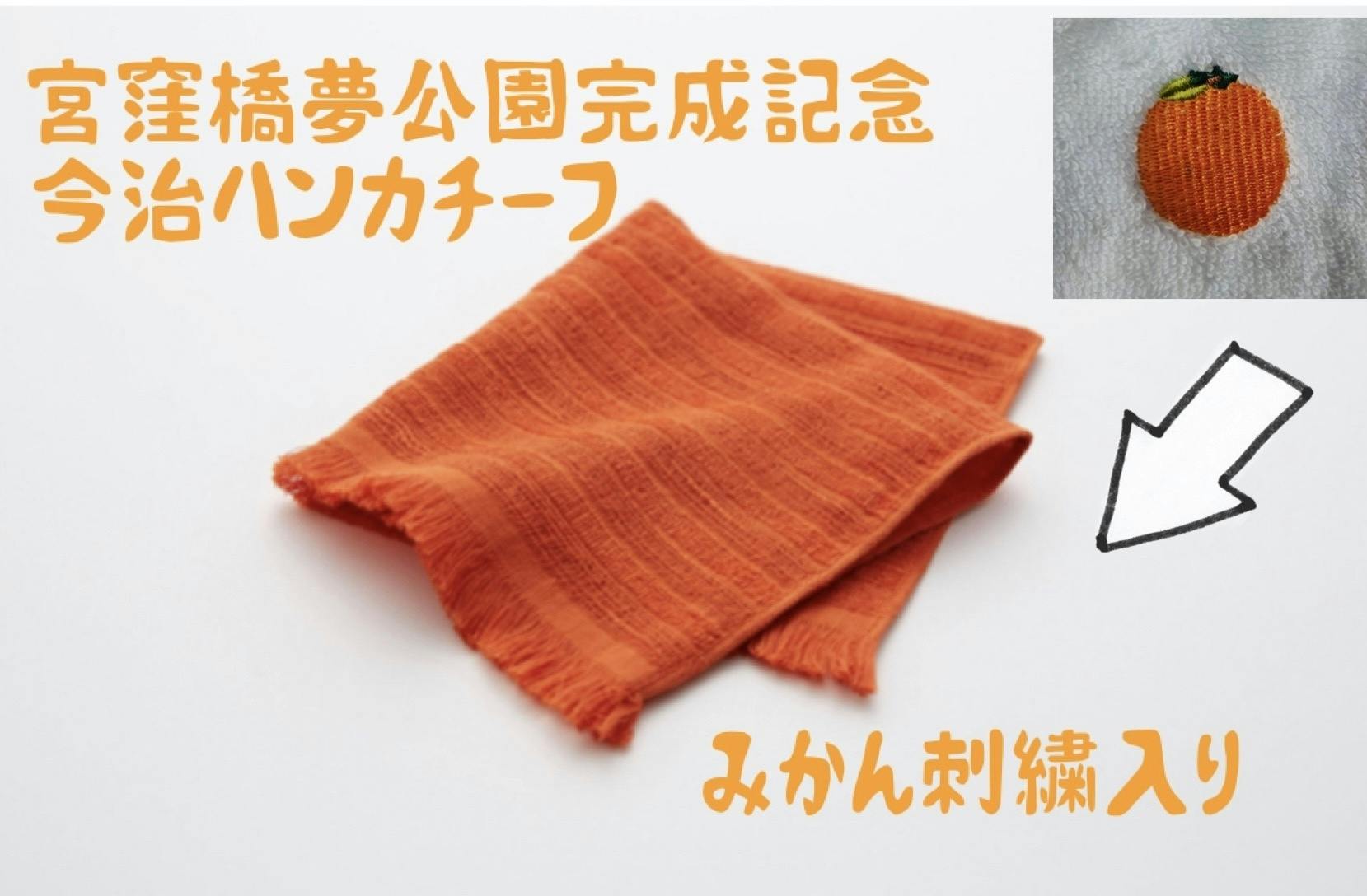 ■宮窪橋夢公園完成記念グッズ 「今治ハンカチーフ」みかんの刺繍入り2枚お届け。