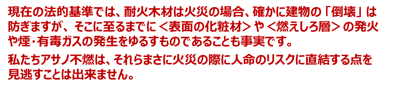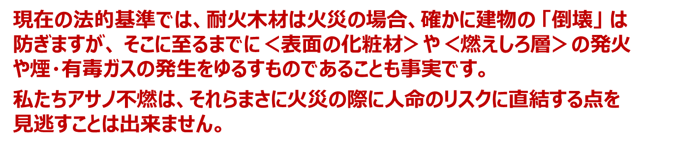 なぜ「火災にならないこと」が必要な理由、それは現在の建築基準法での木造耐火建築物は燃えても倒壊しなければ良い基準であるからです。