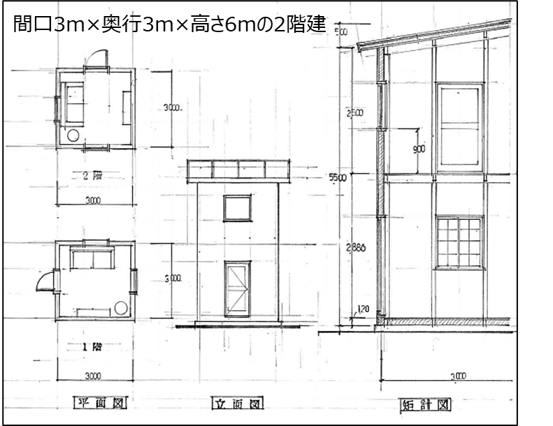 今回の試験構造体は、世界的木造建築ブームにおける影響とグレンフェル・タワー火災を参考に考慮して、木材でも火災にならない事を重点に下記仕様とし、温度センサー・煙や有害ガス感知センサー・内外燃焼確認カメラを設置してセルフネン処理済みと処理無しの比較燃焼確認を行う。実験棟の大きさは幅3m×奥行3mの壁構造で2階建てを想定し、火災の原因とする外壁構造体を下記の様に設定する。また床、屋根、開口部、内装材は設計図による。